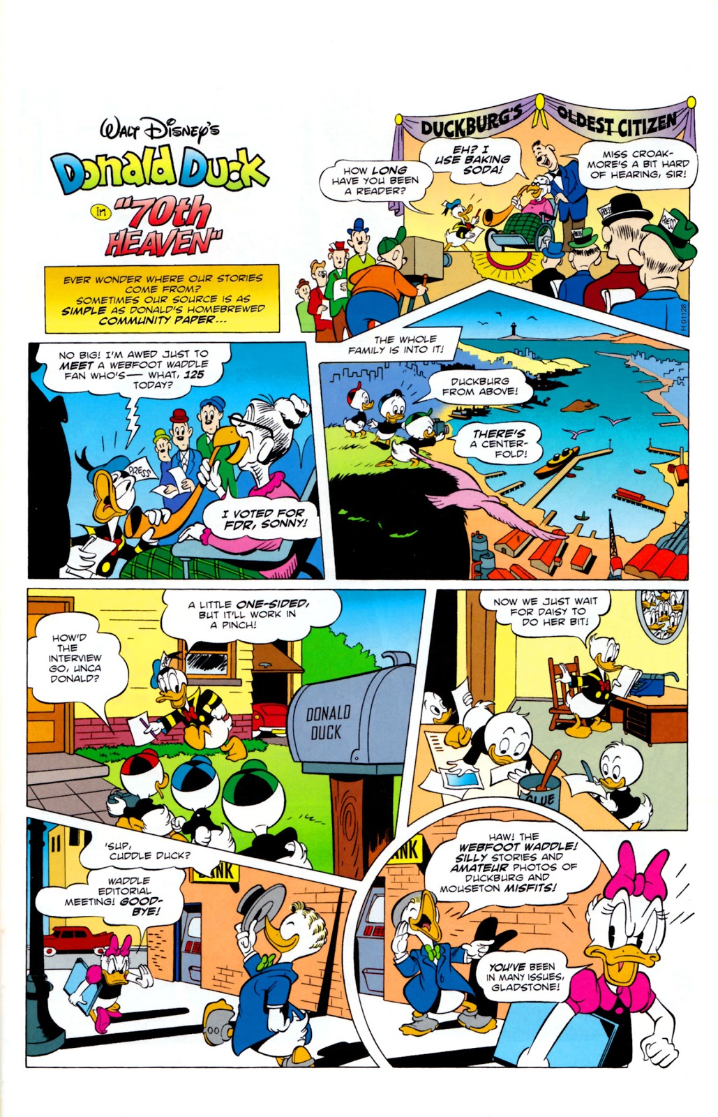 70th Heaven (40 jaar DD Feest! in the original Dutch) is a comic story written by Evert Geradts, penciled by Daan Jippes and inked by Michel Nadorp. It features appearances by Donald Duck, Daisy Duck, Huey, Dewey and Louie Duck, Scrooge McDuck, Gladstone Gander, Mickey Mouse, Minnie Mouse, Pluto, Elvira Duck, Gyro Gearloose and the Little Helper.