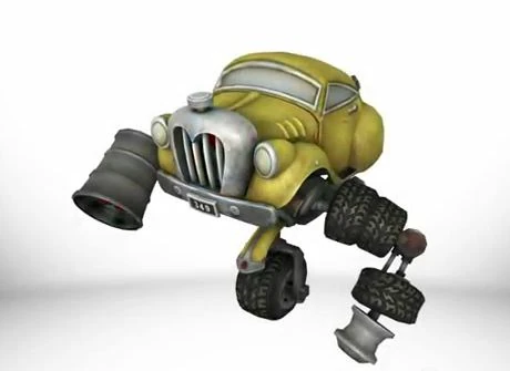 A Blotworx resembling a car with a single, unicycle-like wheel and two arms composed of various wheels, tires, and other car parts. Rockers can fire homing missiles, and will often attack in groups. They are piloted by Spatter Blotlings located inside of the car portion of the Blotworx. The top of the car can flip open, allowing the Blotling to look outside. |