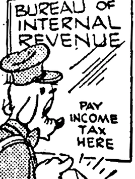The Bureau of Internal Revenue appears in the 1944 comic strip Big Families.