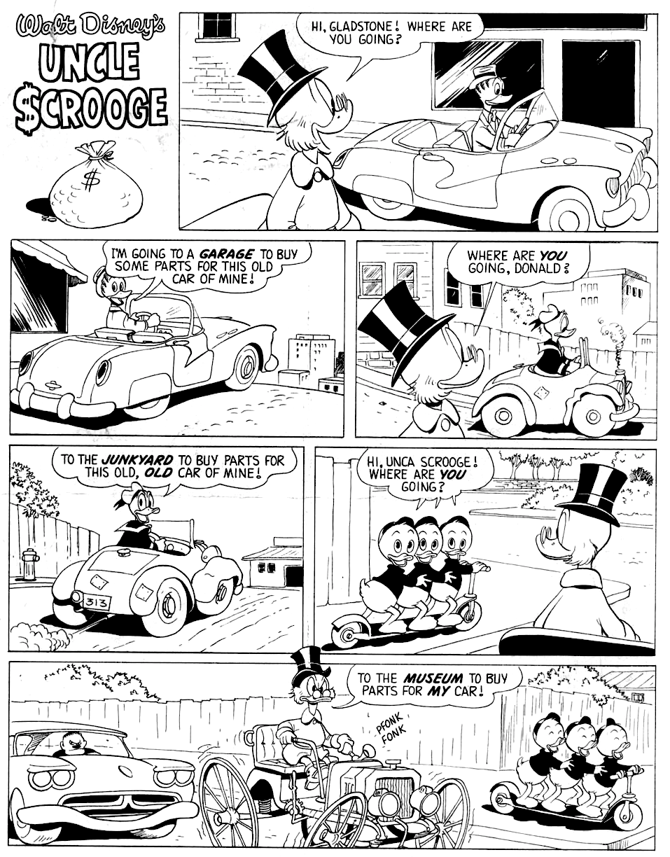 Scrooge uncovers the Rolls-Regal in Barks's 1961 tale.