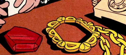 The crystal passed through many hands through the years, until Solego possessed Peg-Leg Pete's new car one day. After Solego totalled the car, he called the towing company, allegedly in Scrooge's name, and told them to tow the car to the Money Bin. After trying to explain to the towing company that Scrooge did not want the car, Fenton Crackshell glanced under the car's hood and encountered the crystal. Before it was able to possess him entirely, Fenton summoned the Gizmosuit. Solego then lost interest in Fenton, and possessed the Gizmosuit instead. Solego first broke into the Money Bin to look for the gold setting, then when he discovered it wasn't there, he went to the jewellers in St. Canard where Scrooge was having it polished. Solego got it and freed himself. Darkwing Duck ultimately managed to reimprison Solego by using a satellite dish, the same way that D'Shane used his polished shield. The two halves of the medallion were then returned to the block of jade, which was buried deep within Scrooge's Money Bin.