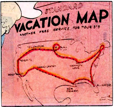 - The Ducks own a “Vacation Map”, on which Yellowstone, New Orleans, Yosemite, Hollywood, Mammoth Cave, the Grand Canyon, and the presence of “alligators” are marked out.