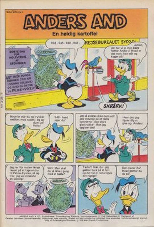 Created in 1977, this story was first printed in 1978 in the Danish Anders And & Co. #1978-38. It has never been printed in English anywhere.