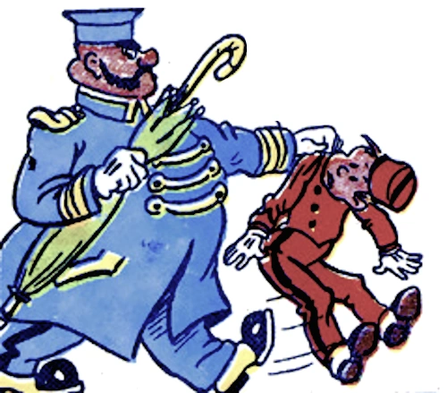 Entresol was the brutish, narrow-minded chief of staff of the Moustic Hotel in Brussels throughout the late 1930's and early 1940's. As such, the authoritative employee often antagonized mischievous bellhop Spirou, who paid back in kind with tricks galore.