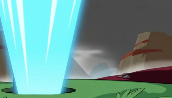 One of the Realm's golf hole lets out a blast of blue energy after the blue golf ball has entered it.