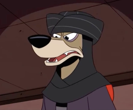 An unsmiling motorcycle-driving Middle-Eastern warrior never seen without his sword or cloak, D'Jinn is the last of a long line descended directly from the First Genie, who turned himself mortal and married a human woman. Highly invested in the epic grandeur of the centuries-spanning "tale of the Lamp", he had sworn to retrieve his supernatural ancestor's Magic Lamp before his 2019 birthday, which led to him invading McDuck Manor in an effort to get it from Scrooge. D'Jinn subsequently shared an adventure with the Ducks in an effort to get back the lamp, which had fallen into the hands of Ma Beagle.