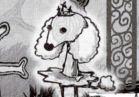 Fifi is one of the animals buried in the Haunted Mansion's Pet Cemetery, and, as such, her tutu-wearing, surprisingly intelligent ghost is one of the Mansion's “999 happy haunts” — though Fifi's happiness is very relative as she insists that she was, in life, the pet of the Bride, a fact of which the Bride has no memory whatsoever, refusing to welcome "that weird rat-dog" into the Attic.