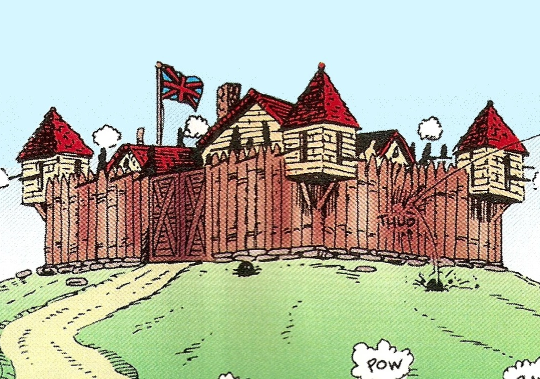 In the early 19th century, the British army finally remembered the existence of Drakeborough, now the only piece of land in this region of the United States that did not belong to Spain, and they sent a new garrison there. Quickly enough, however, they were attacked by the Spaniards. To be able to leave the fort without technically abandoning their duty, the British gave up Killmule Hill and made American bystander Cornelius Coot its owner. Coot, unexpectedly, managed to fight off the approaching Spanish army, and was left with a fort all his own. He renamed it Fort Duckburg, thinking it sounded more American, and welcomed new colons to rebuild a city (Duckburg) around it.[3] Around the time of Duckburg's foundation, the Fort was besieged by the Tiptoe tribe, who had been tricked by a conman into believing the Duckburgers were about to attack them. The Duckburgers' victory would later become the subject of a celebration, “Duckburg Day”, while the Tiptoes' wrongful attack remained a source of shame for their people until Duckburg Day 1969, when they were able to clear their name on the occasion of an attack by the Beagle Boys on a Fort Duckburg replica float built by Donald Duck and the triplets. [4]