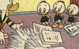 Touted by Allworth as superior reading material for children compared to Super Snooper and other such comic-books, the Golden Tales are preachy morality plays featuring Perky Pup and Buster Bunny. In 1979, Donald Duck let himself be hired as their proofreader by Allworth, but didn't manage to slog through them, and was eventually fired by Allworth when the grim-faced doctor discovered Donald actually liked Super Snooper.
