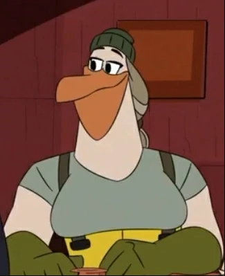 The partner of Fisher, this tall pelican woman is a scrappy fisher-person from the Duckburg Docks, blessed with a strong work ethic — though saddled with a more abrasive temper than her partner, Fisher. In 2018, shortly after the attack of Magica De Spell's Shadow Army on the town, Fisher and Mann rescued a drowning Flintheart Glomgold from the bay. Glomgold, amnesiac, had reverted to "Duke Baloney" (the name he went by in his youth) and forgotten all about his evil ways.