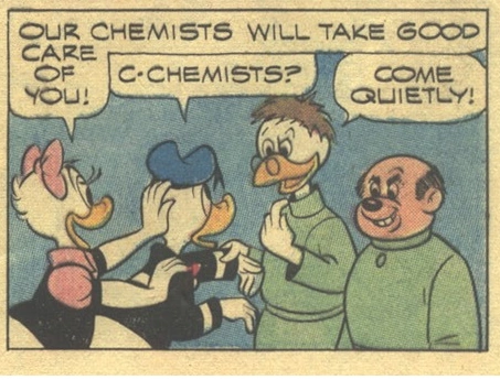 "Mr Gearloose" is the theoretical, uncertain name of a chemist who is a male anthropomorphic cockatoo.