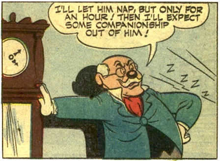 Goofy felt guilty about getting paid for 24 hours of 'work' when he'd only done three, and forcibly returned against Hayday's wishes. This was actually fortunate for Hayday, whose mansion was being robbed; Goofy's blundering interrupted the thief and landed him in jail. Hayday rewarded Goofy's unwitting heroics with 200 dollars, which Goofy unfortunately took as an invitation to come back for 200 dollars' worth of days at 50 cents a day…