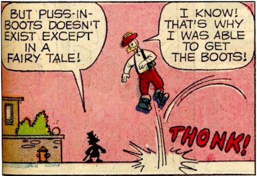 Decades earlier, the Laugh-o-Grams cartoon Puss in Boots cast Julius the Cat in a modern-day retelling of the story, but with no direct acknowledgement of the fairy tale in-universe.