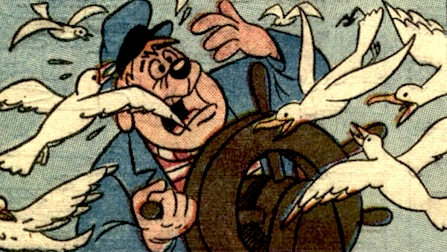 This malevolent captain was the head of a spying operation in 1969 Duckburg, being at the helm of a ship which waited, hidden in a fog bank, for Smedley to return from his trip ashore to the Rocket Research Lab with stolen schematics. However, Donald Duck and Huey, Dewey and Louie Duck unwittingly intercepted a rendez-vous map sent to Smedley by his masters by carrier pigeon, and followed it back to the ship, believing they had found a treasure map. As Donald had the Homing-Hummer lodged in his throat at the time, this resulted in a storm of seagulls assailing the spy ship. With his vision impaired, the spymaster was unable to steer properly and crashed the boat on some jagged reefs, where it remained stuck and exposed long enough for the spies to be arrested by the Coast Guards — who also sent word ahead to the Rocket Research Lab, also leading to Smedley's arrest.