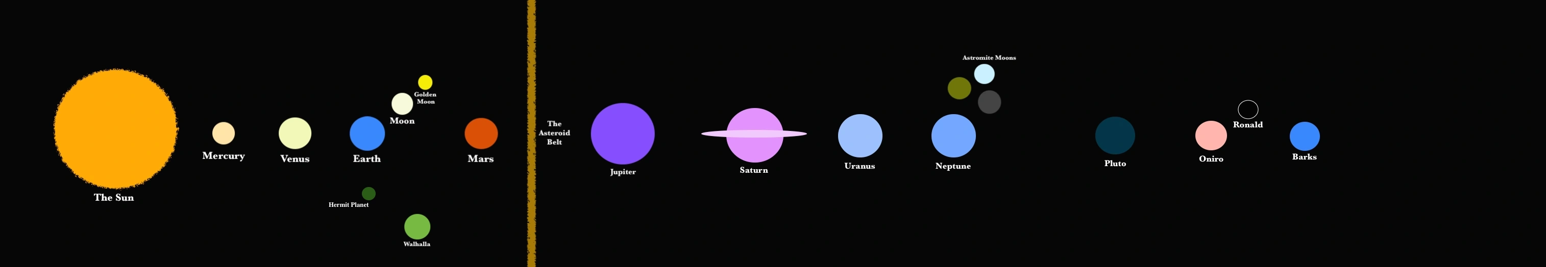 The Solar System is an averagely-sized system best-known for the planet Earth, although it is also home to several other inhabited planets, including Mars and Oniro. Its planets orbit the Sun. Although several lone scientists from Earth have achieved interstellar travels, the Solar System is largely cut off from galaxy-level politics, being left out of such organizations as the United Galactic Federation. In fact, most inhabitants of Earth seem unaware of the other inhabited planets in their own System, an arguably willfull cluelessness that surely mattered a great deal to the aliens in their treatment of the Solar System.