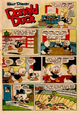 The April Foolers is a comic story written and drawn by Carl Barks. It features Donald Duck and Huey, Dewey and Louie Duck.