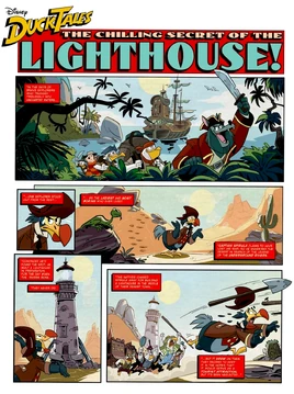 The Chilling Secret of the Lighthouse is a DuckTales 2017 comic written by Joe Caramagna and drawn by Luca Usai. It features the 2017 Continuum versions of Donald Duck, Huey, Dewey and Louie Duck, and the debut appearances of Captain Spirula and Mrs Von Trap.