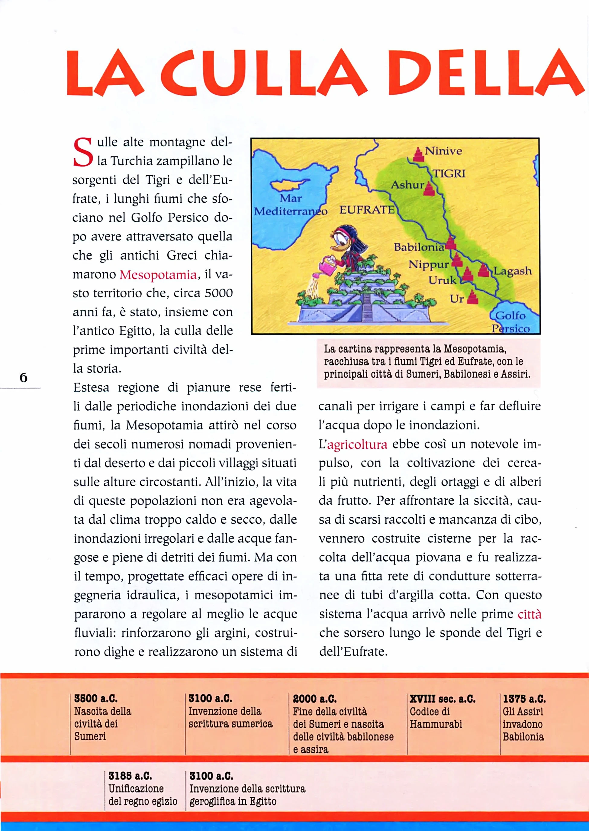 The Cradle of Civilization (entitled La Culla Della Civita in its original Italian) is a yet-to-be-translated story by unknown authors, an article featured in the third issue of La Storia Universale. It features Goofy and a lookalike of Daisy Duck, and also mentions King Hammurabi.