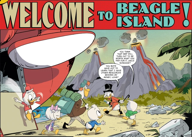 Welcome to Beagle Island! is the first story featured in DuckTales #6, it is followed by and paired with The Giant Butterfly of Duckburg.