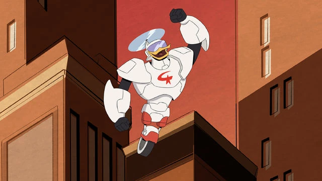 After more and more heroics, Fenton Crackshell-Cabrera's robotic identity Gizmoduck has become famous and Huey Duck's idol. The "famous" part catches the attention of hype-maniac Mark Beaks, who attempts a corporate (and, if possible, corporal) takeover of the Gizmoduck brand and suit.