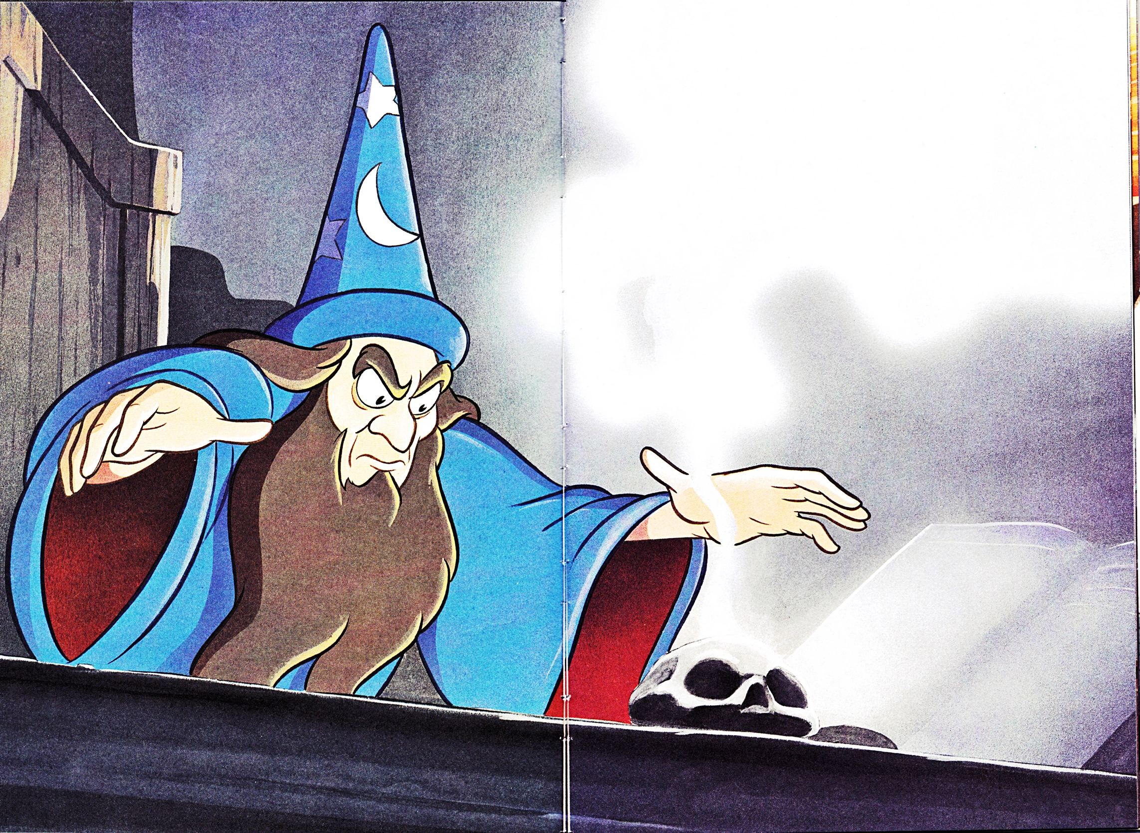 Unspeakably old and wise, Yen Sid is a very powerful and knowledgeable wizard. He lives in his castle (the exact location of which is unknown), where he spends his days experimenting on his magic powers. Yen Sid gains much of his magic powers from his hat, though he also has abilities of his own. Mickey Mouse has been Yen Sid's apprentice in magic and protégé since 1940, though Mickey's recklessness and mischief have made his training very slow.