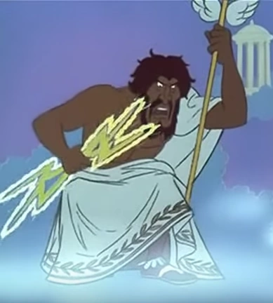 The immensely powerful Greco-Roman God of Lightning, Hospitality, the Air, and the King of the Olympian Gods, Zeus is a fun-loving fellow who is sometimes taken with his own importance, but is at heart benevolent and even kindly. Despite some extramarital affairs,[1] Zeus truly loves his wife Hera and his son Hercules. Like the other Ancient Gods, Zeus stopped running the universe following the Titan War, retiring to the World Tree with Ares and Aphrodite; but, alongside these two, he was inspired to take up arms once again in 1943, and has since occasionally interfered with the mortal world, even for something as petty as silencing an obnoxious mortal whose tuba-playing annoys him.[2]